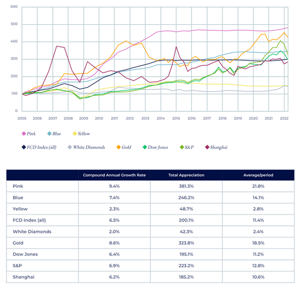 O dvě desetiletí později, když se trh vzpamatovával z hypoteční krize v USA, ukázaly Fancy Color Diamonds, že mohou překonat běžné formy investování. V posledních desetiletích hodnota Fancy Color Diamonds neustále narůstá jak na ceně a celý segment je považován za výrazně méně volatilní než většina tradičních i alternativních forem investic. Například Blue Fancy Diamonds se od roku 2005 zhodnotily o 241% a Pink Fancy Diamonds o 366%. Růžové diamanty Argyle ještě o výrazně více a to bez rozlišení tvaru, barvy či velikosti. Mimochodem tyto tři kategorie nezaznamenaly v období od roku 2005 žádný významný pokles.