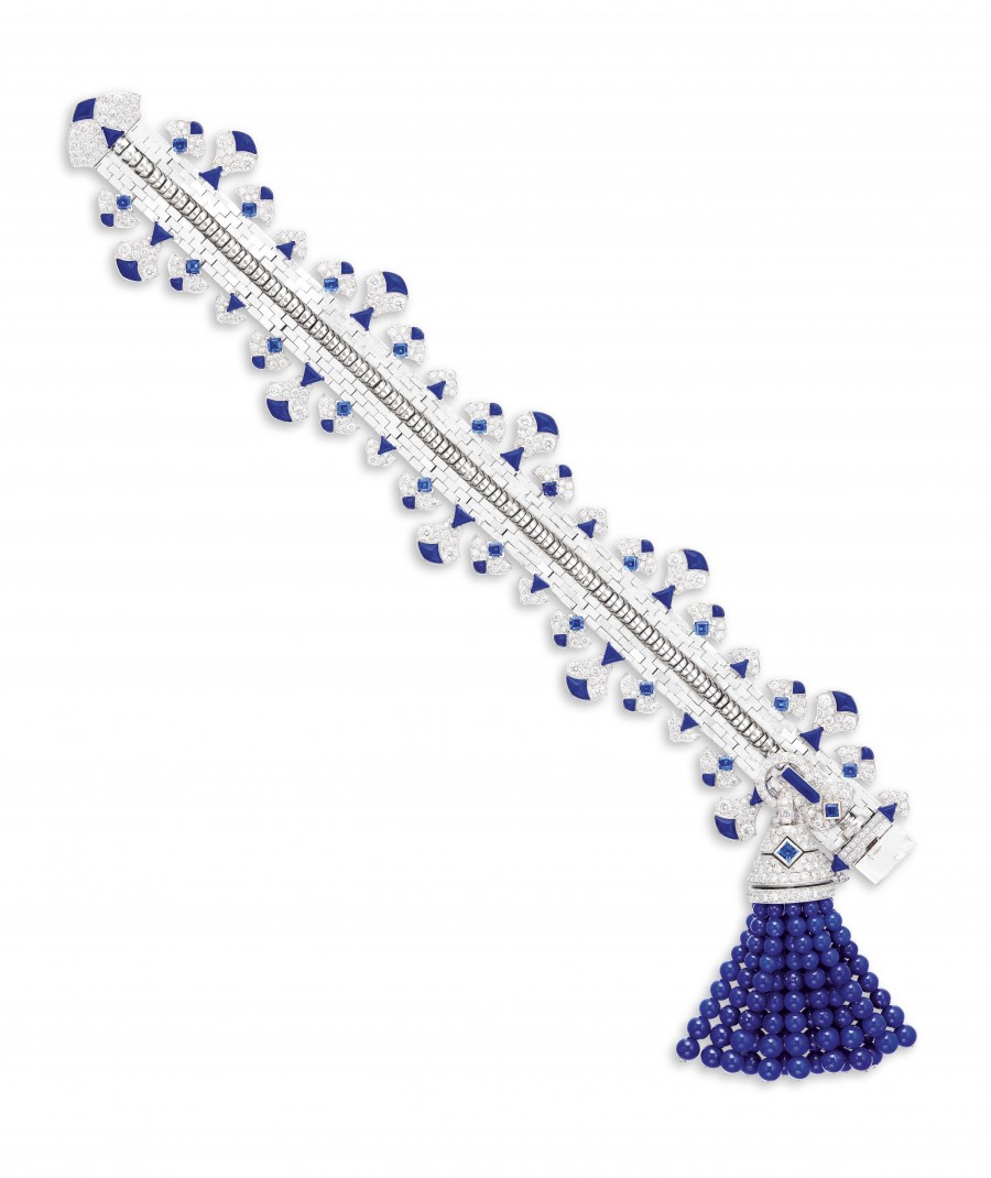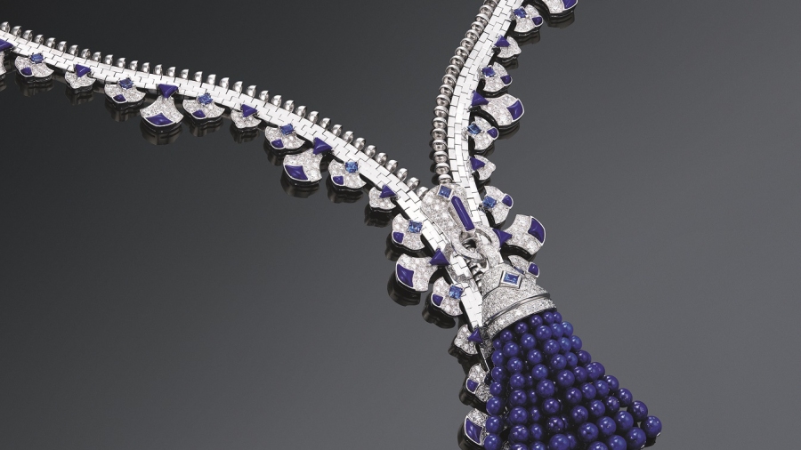 Vzácný a netradiční náhrdelník ve tvaru zipu s diamanty, safíry a kameny lapis lazuli od známé společnosti Van Cleef & Arpels byl prodán za 555 683 dolarů. Což je těsně pod jeho nejvyšším odhadem 580 000 dolarů.